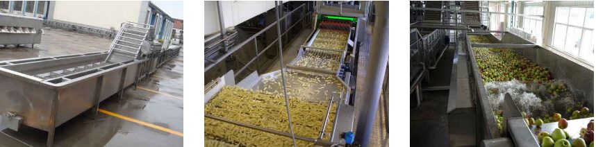 The production line is suitable for kitchens of school, food processing factory, vegetable processing & distribution center which wash leafy vegetables, root vegetables and seafood etc.