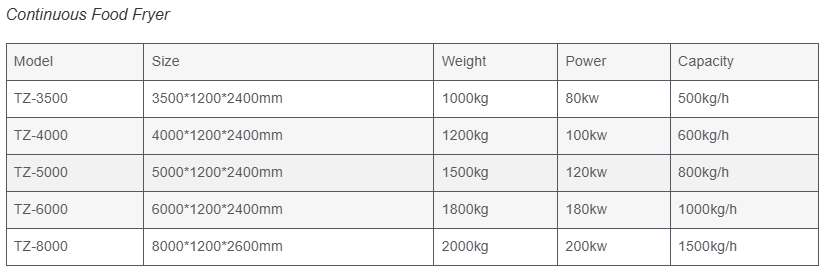 - The double-layer mesh belt design plays a role in pressure floating to ensure the color consistency of the fried products. The effective distance of the upper and lower mesh belt is about 80-90mm, which is convenient for a variety of fried products.