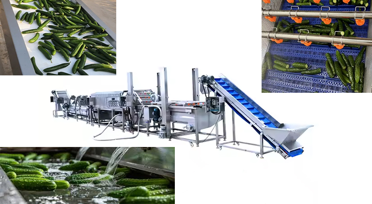 The Cucumber Processing Line is made of high quality SUS304 stainless steel, which conforms to the national food export standard. Each individual machine in the production line can be customized according to the different processing characteristics of customers’